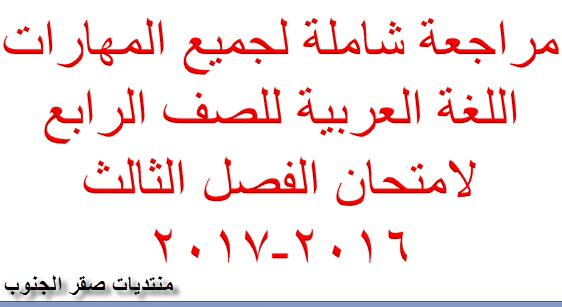 مراجعة شاملة لجميع المهارات اللغة العربية للصف الرابع لامتحان الفصل الثالث