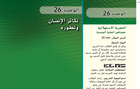 دليل المعلم للوحدة 26 تكاثر الانسان وتطورة لمادة الاحياء للصف الحادي عشر الفصل الثالث 2016-2017