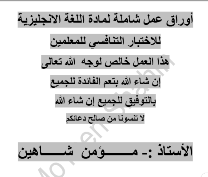 الدوسية الشاملة لمادة اللغة الانجليزية -لغايات- الامتحان التنافسي للمعلمين