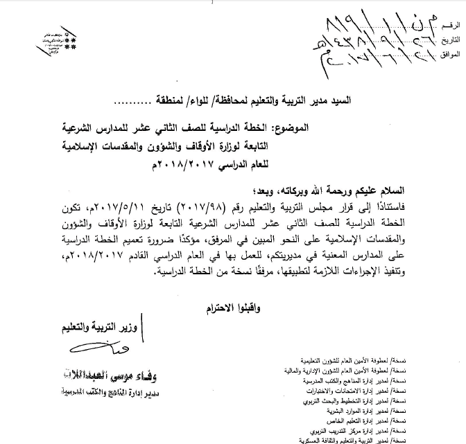 الخطط الدراسية الجديدة للفروع الأكاديمية والمهنية ( الفرع الشرعي ) لتحميل الخطة ملف PDF اضغط هنا وتابع