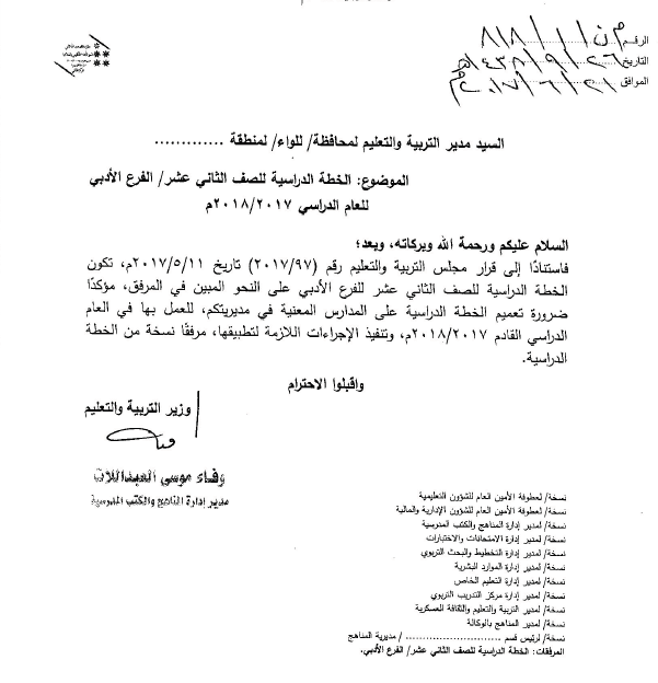 الخطط الدراسية الجديدة للفروع الأكاديمية والمهنية ( الفرع الادبي ) لتحميل الملف اضغط هنا وتابع