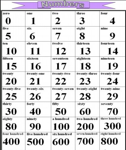 تأسيس الطفل في الأرقام في اللغة الانجليزية :-
