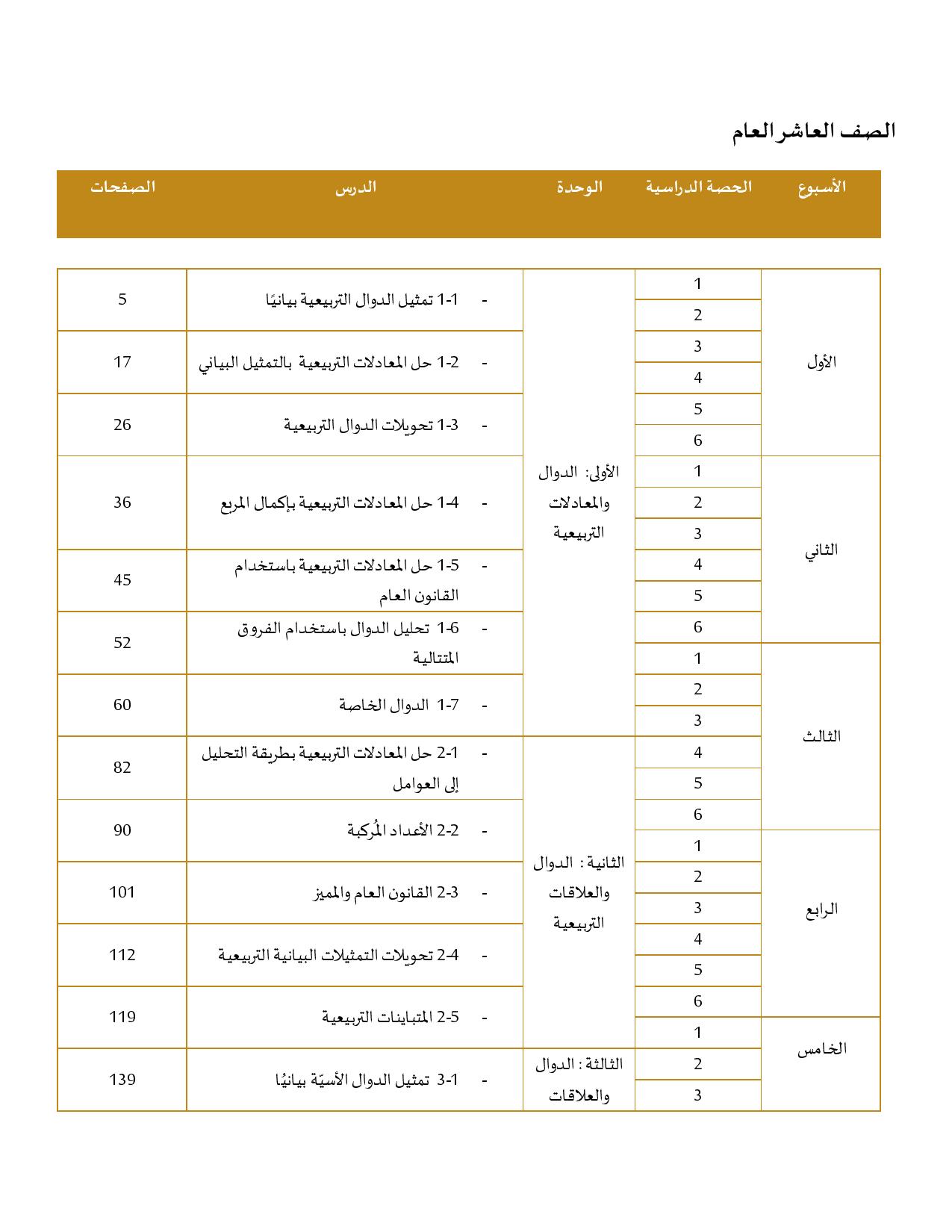 التوزيع الزمني لمادة الرياضيات الصف العاشر متقدم الفصل الاول | الفصل الاول | 2 | 2K |
