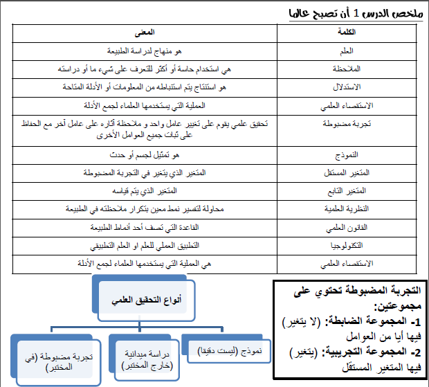 ملخص الوحدة الاولى الدرس الاول والثاني لمادة العلوم الصف الخامس الفصل الاول لتحميل الملف PDF من هنا
