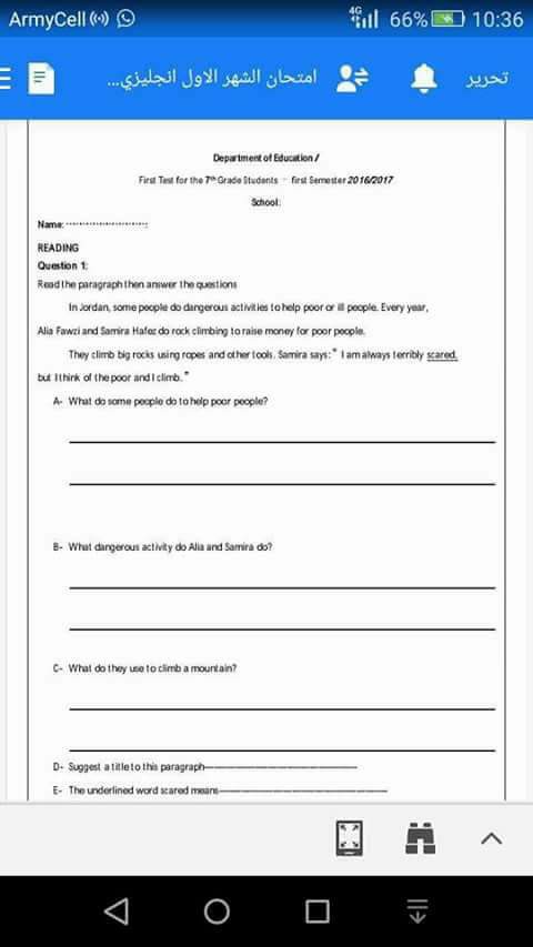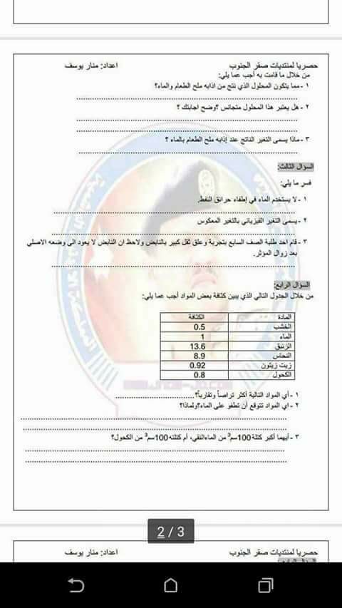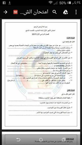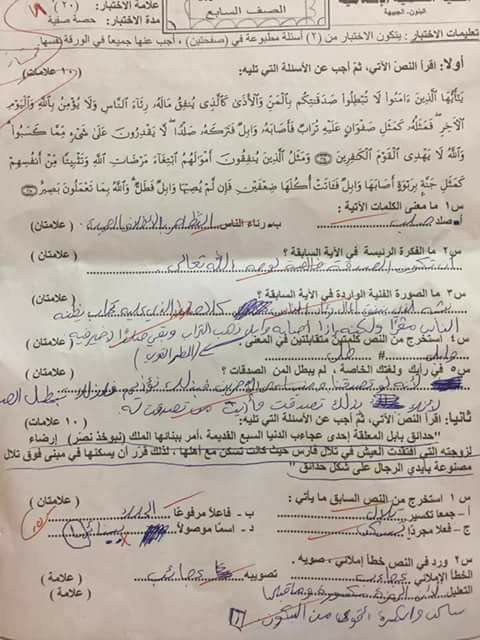 بالصور:نماذج امتحانات الشهر الأول لمواد الصف السابع الفصل الأول