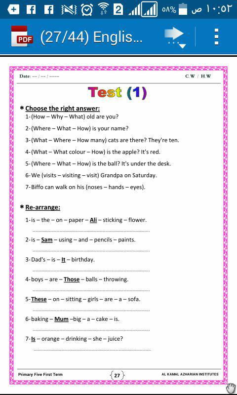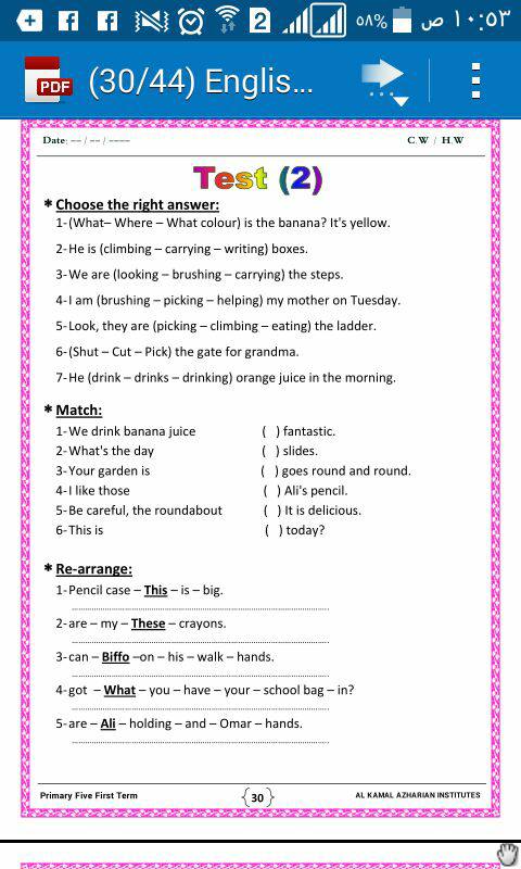 ننقل لكم بالصور اختبارات الصف الخامس English world لتحميل الملف اضغط هنا وتابع