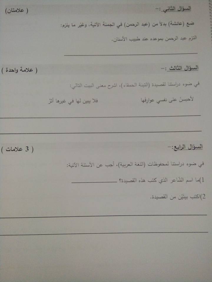 ننقل لكم بالصور : نموذج لاختبار الشهر الأول لمادة اللغة العربية للصف الخامس الفصل الأول