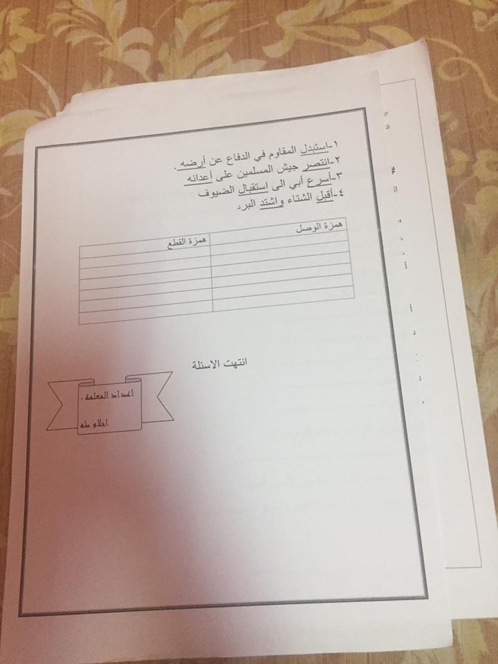 ننقل لكم بالصور: امتحان الشهر الأول لمادة اللغة العربية للصف الخامس الفصل الأول