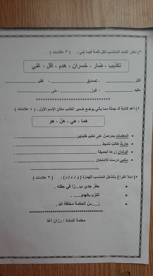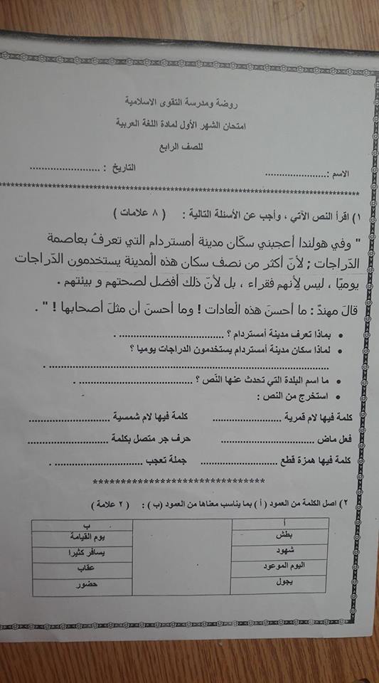 ننقل لكم :نماذج لامتحان اللغة العربية للصف الرابع الفصل الأول