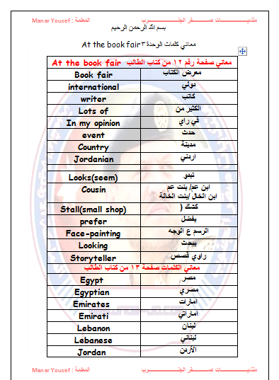 السلام عليكم ورحمة الله وبركاته اقدم لكم وحصريا لمنتديات صقر الجنوب معاني الوحدة الثالثة كاملة للصف السادس Action Packالفصلالدراسيالأول 2017-2018 بالصور ومرفق دعواتكم منتديات صقر الجنوب
