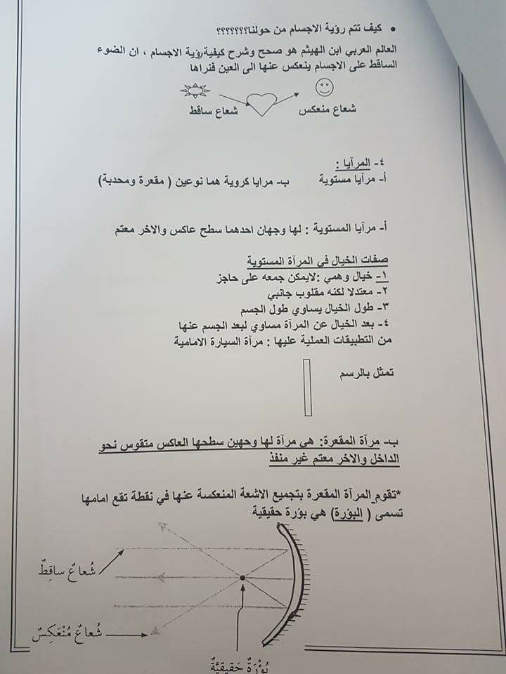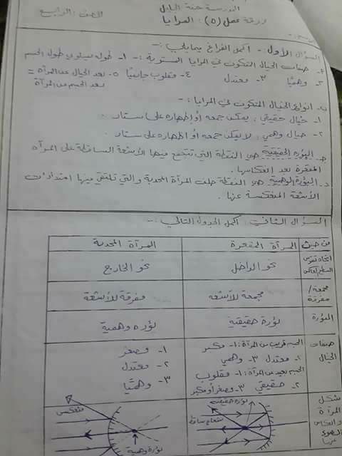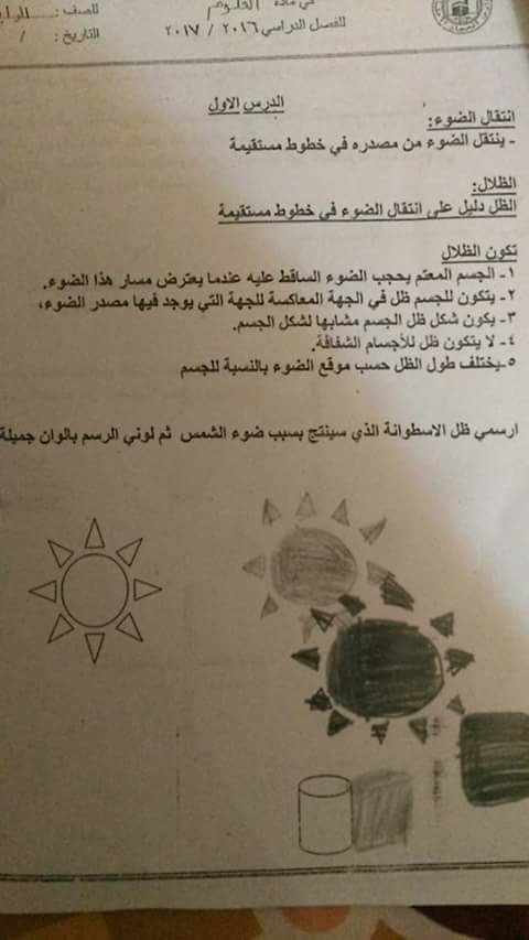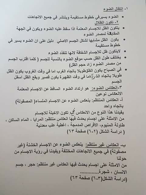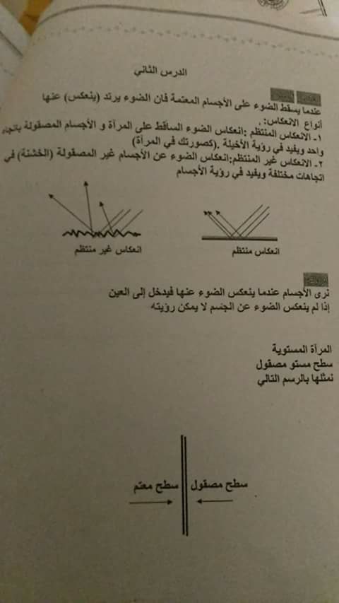 تلخيص الوحدة الثانية-الضوء-علوم-الصف-الرابع-الفصل الأول