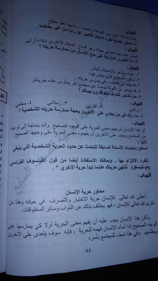 شرح ومعاني وأفكار وإجابات الوحدة الثالثة (الحرية والتسامح) - اللغة العربية للصف السابع الفصل الأول