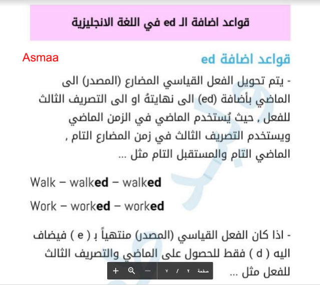 قاعدة إضافة ed للفعل لمادة اللغة الانجليزية الصف الخامس الفصل الاول