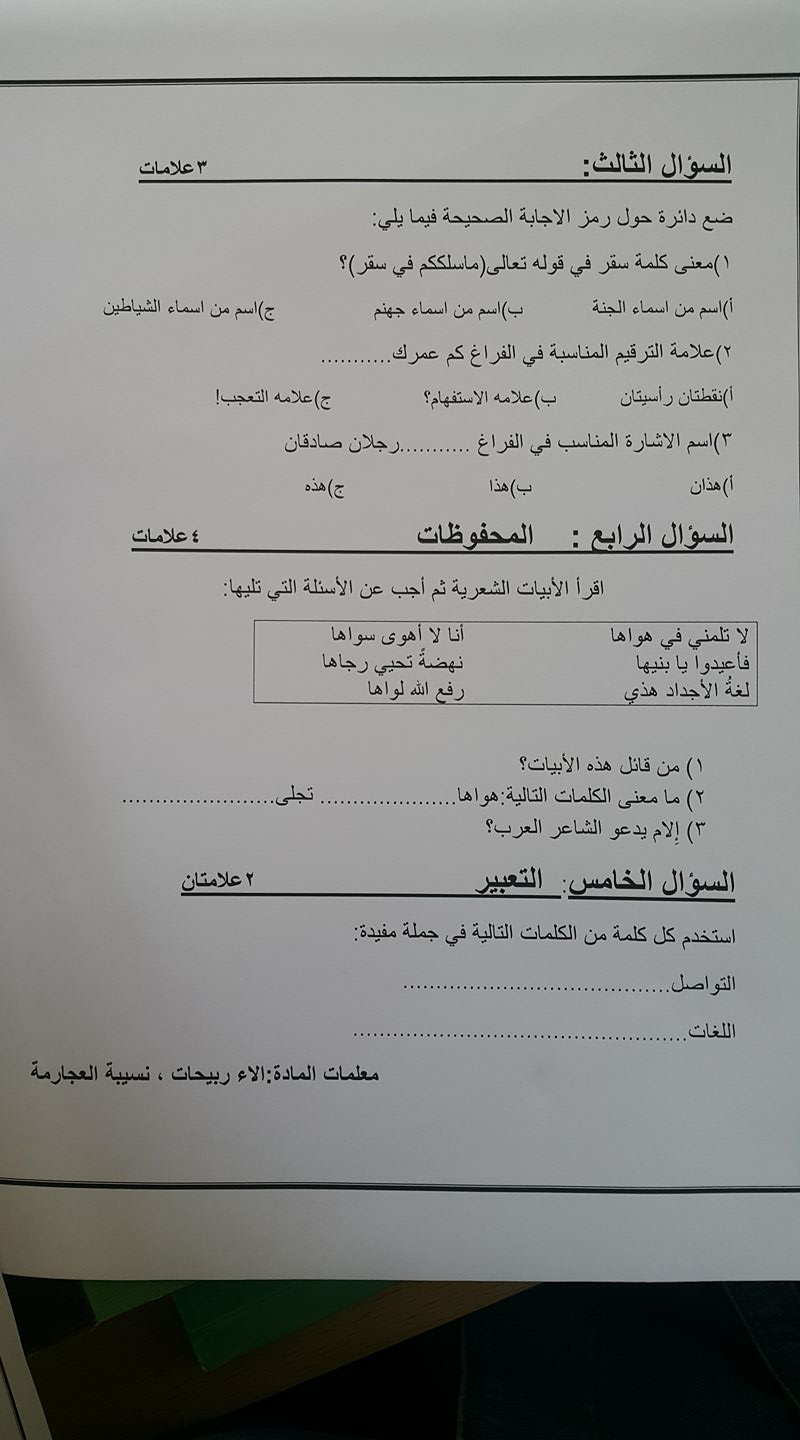 ه همسآت شرقية طاقم الادارة إنضم 1 فبراير 2013 المشاركات 17,282 مستوى التفاعل 362 النقاط 63 الإقامة المفرق 16 أكتوبر 2017 #1 نموذج جديد لامتحان الشهر الأول لمادة اللغة العربية للصف الخامس الفصل الأول التعديل الأخير بواسطة المشرف: 6 أكتوبر 2023