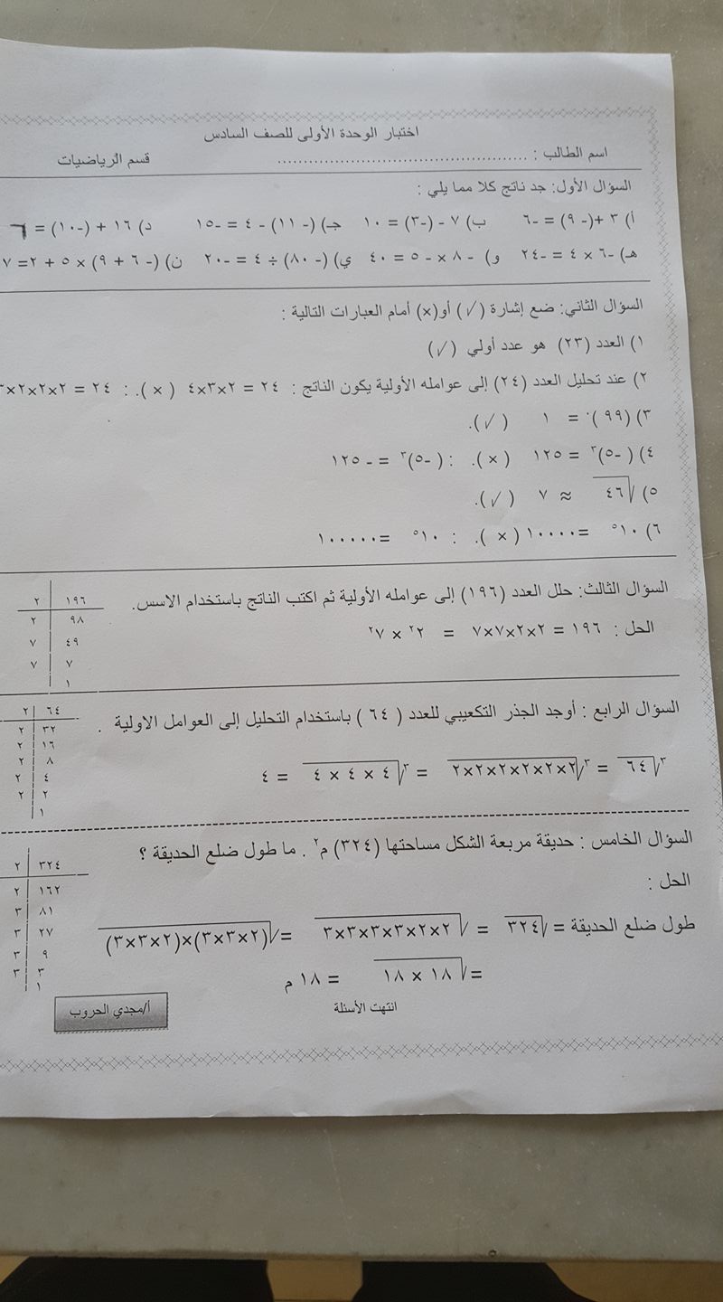 بالصور :. نموذج مع الإجابة: لامتحان الشهر الأول لمادة الرياضيات للصف السادس الفصل الأول بالصور :. نموذج مع الإجابة: لامتحان الشهر الأول لمادة الرياضيات للصف السادس الفصل الأول