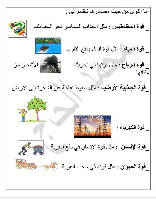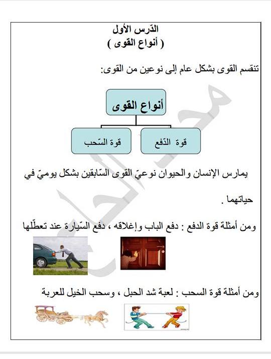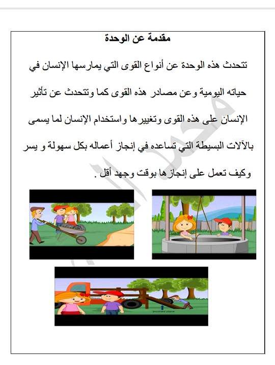 تلخيص شامل للوحدة الثالثة: القوى والآلات لمادة العلوم للصف الثالث الفصل الأول