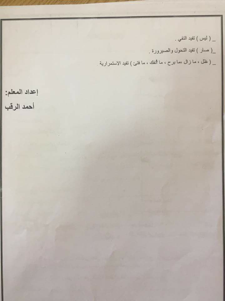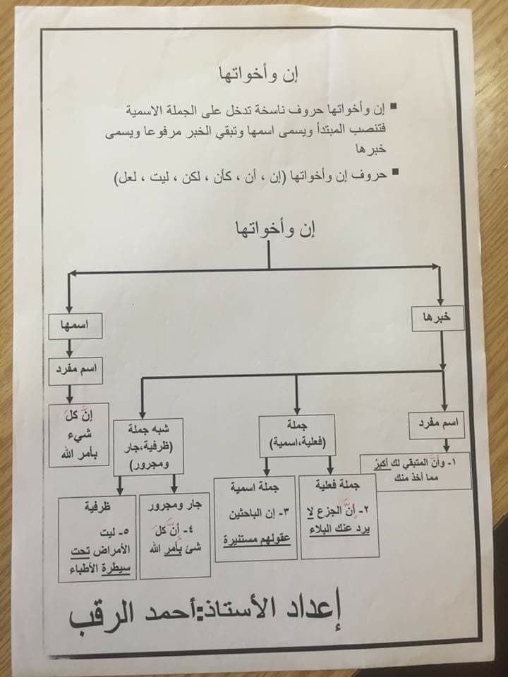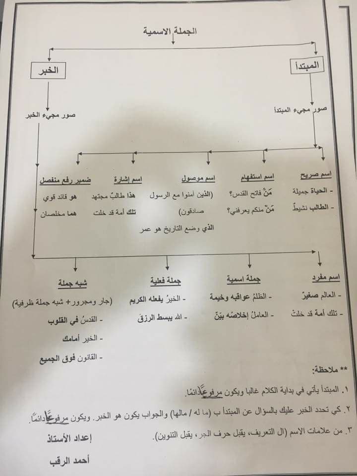 بالصور :. مُلخصّات لقواعد اللغة العربية / الصف التاسع ( كان وأخواتها، إن وأخواتها، الجملة الاسمية )