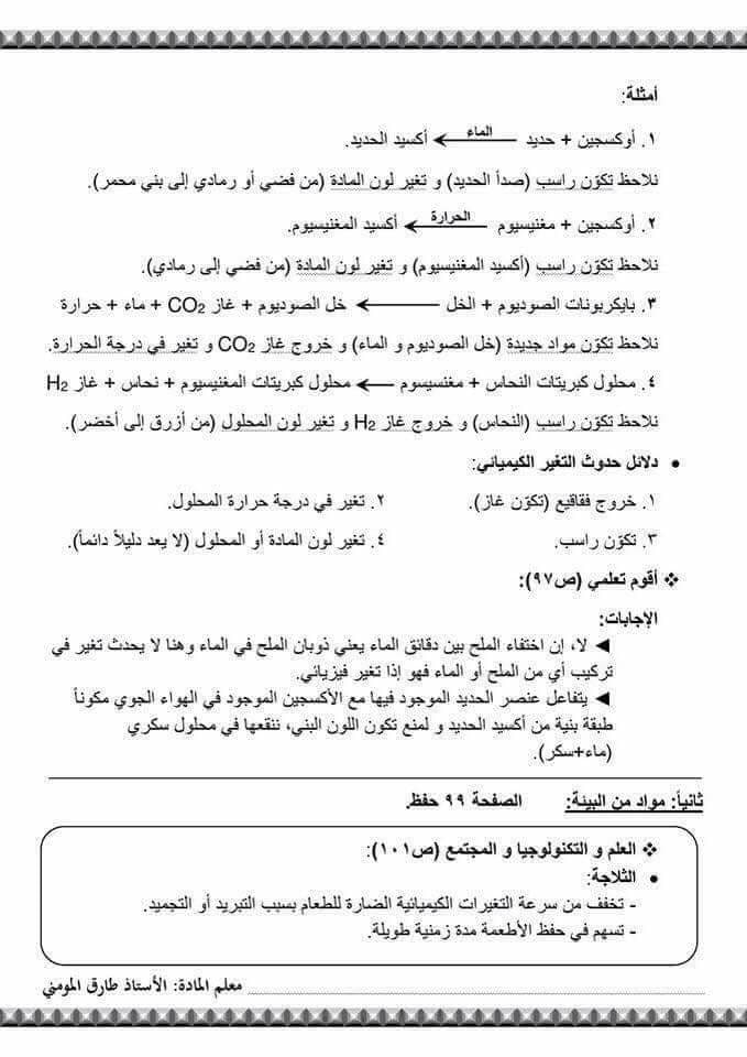 تلخيص وحدة المادة وحل الأسئلة لمادة العلوم للصف الخامس الفصل الأول