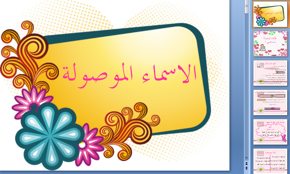 عرض محوسب :بوربوينت الأسماء الموصولة لمادة اللغة العربية للصفين الثاني والثالث