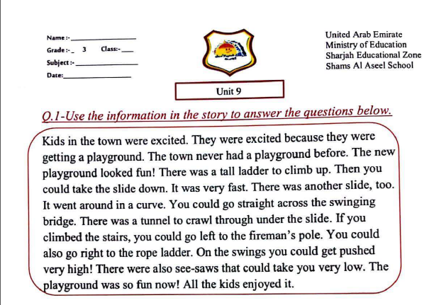 امتحان شامل لمادة اللغة الانجليزية الصف الثالث الفصل الاول