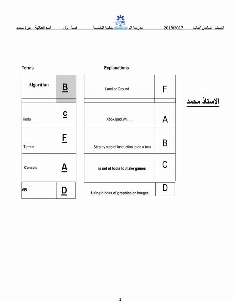 ملخص لمادة الديزاين شاملة لمادة الامتحان الصف السادس الفصل الاول 2017-2018