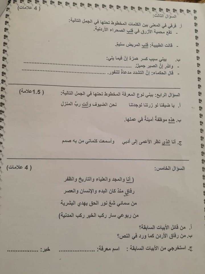 بالصور نماذج لامتحان الشهر الثاني اللغة العربية للصف السابع الفصل الأول
