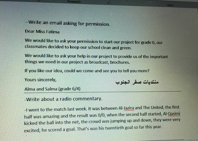 بالصور :. براغرافات لمادة اللغة الانجليزية للصف السادس الفصل الاول