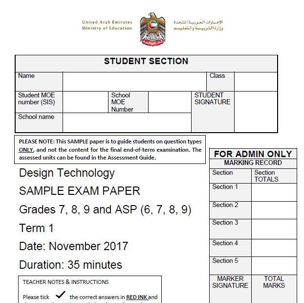 Design_Technology_Grade(7-9),ASP(6-9)_Sample_Exam_T1 للصف السابع الفصل الاول