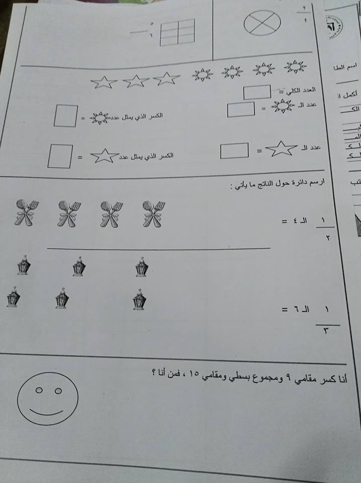 ورقة عمل وحدة الكسور لمادة الرياضيات للصف الثالث الفصل الأول