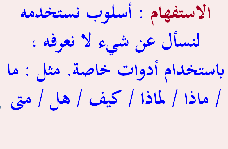 بالصور + ملف PDF شرح قواعد اللغة العربية درس الاستفهام الصف التاسع الفصل الاول 2018