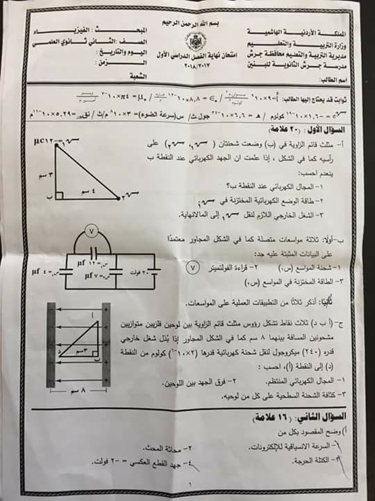 توجيهي :مقترح لمادة الفيزياء "العلمي" م3 منهاج جديد للدورة الشتوية