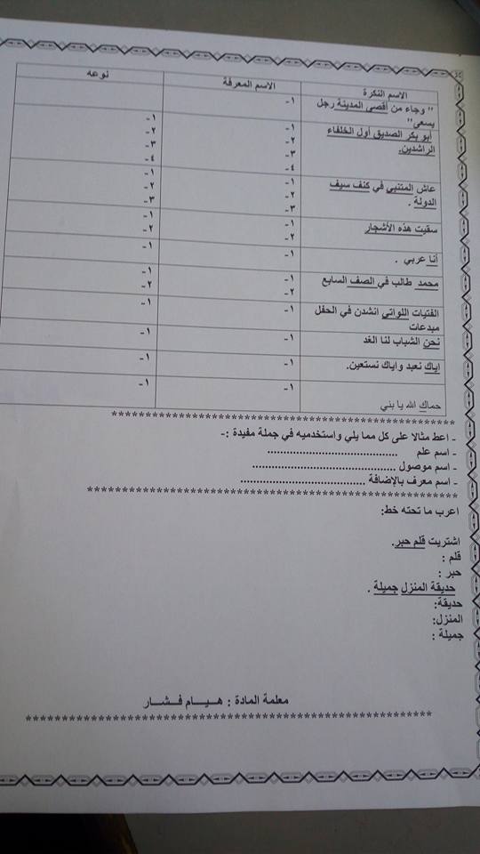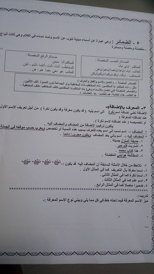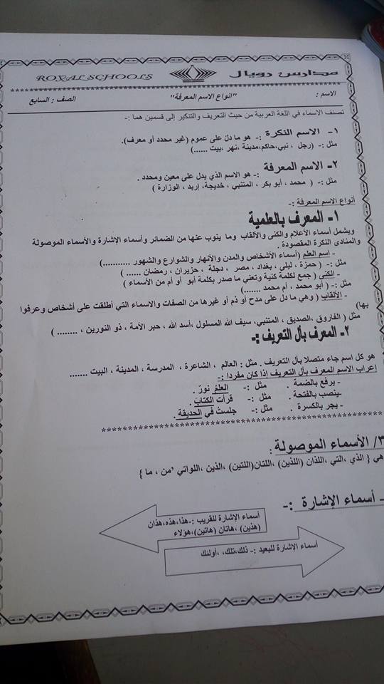 تلخيص أنواع المعرفة لمادة اللغة العربية للصف السابع الفصل الأول