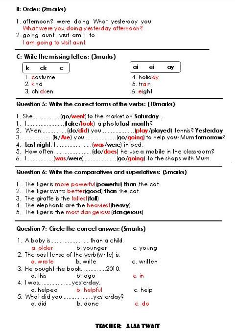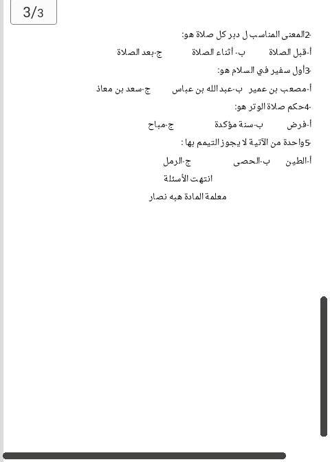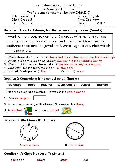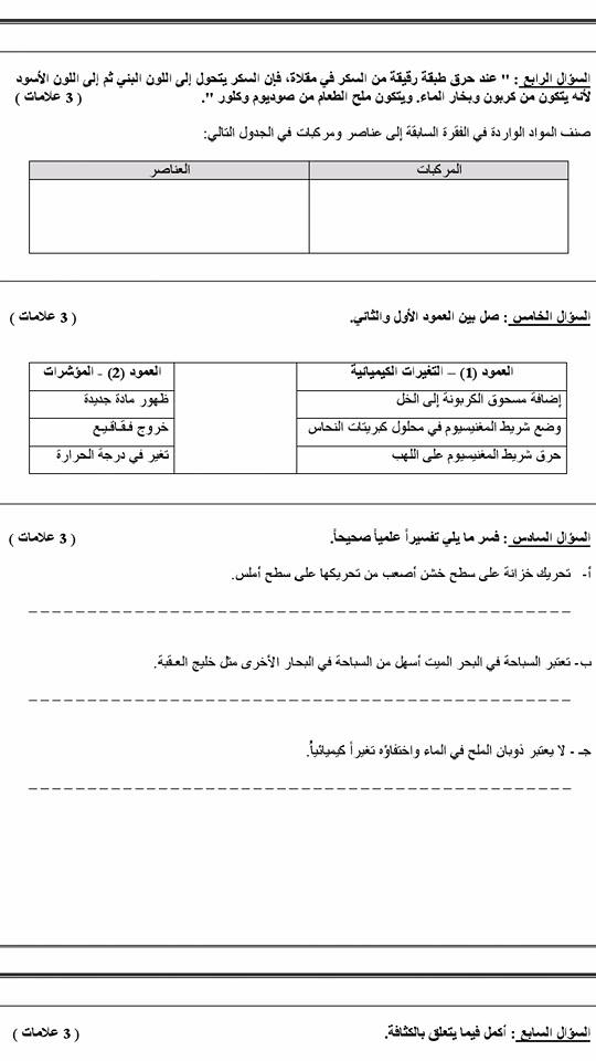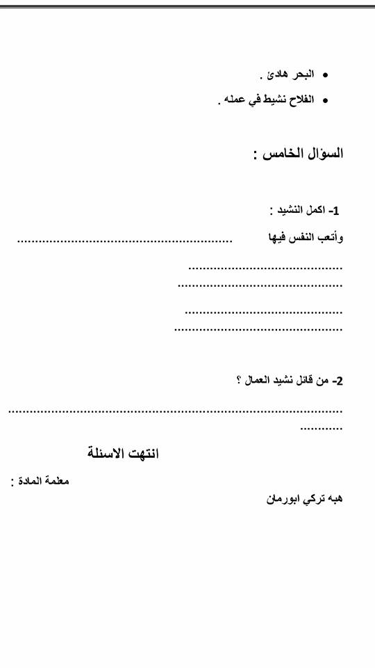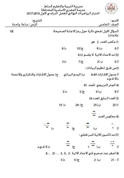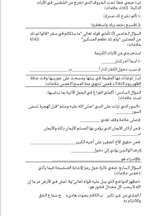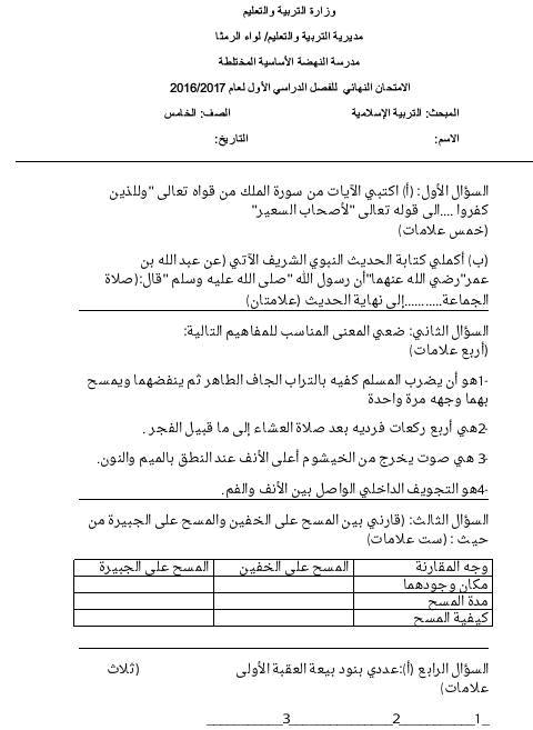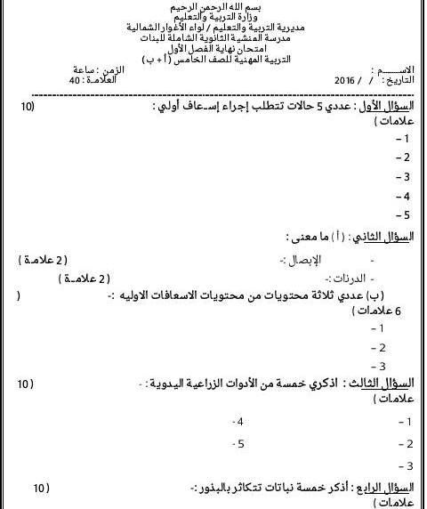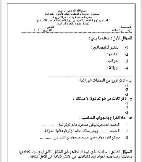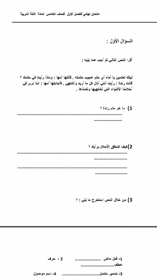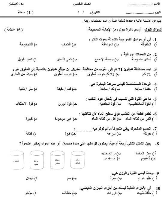 سنوات سابقة :. بالصور :. نماذج :الاختبارات النهائية لمواد الصف الخامس الفصل الأول