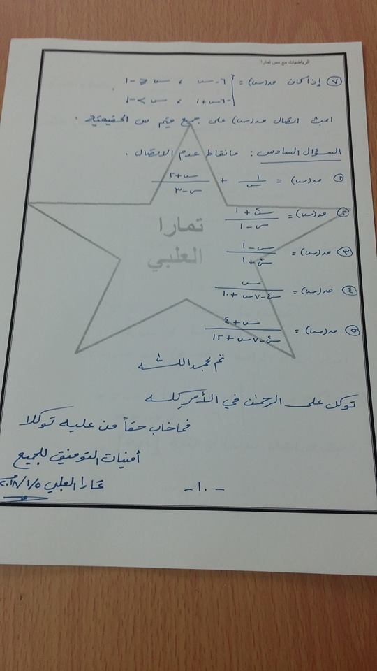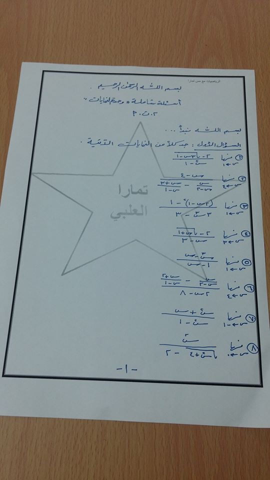 التوجيهي: أسئلة شاملة "النهايات" لمادة الرياضيات م 3 الفرع الأدبي للدورة الشتوية 2018