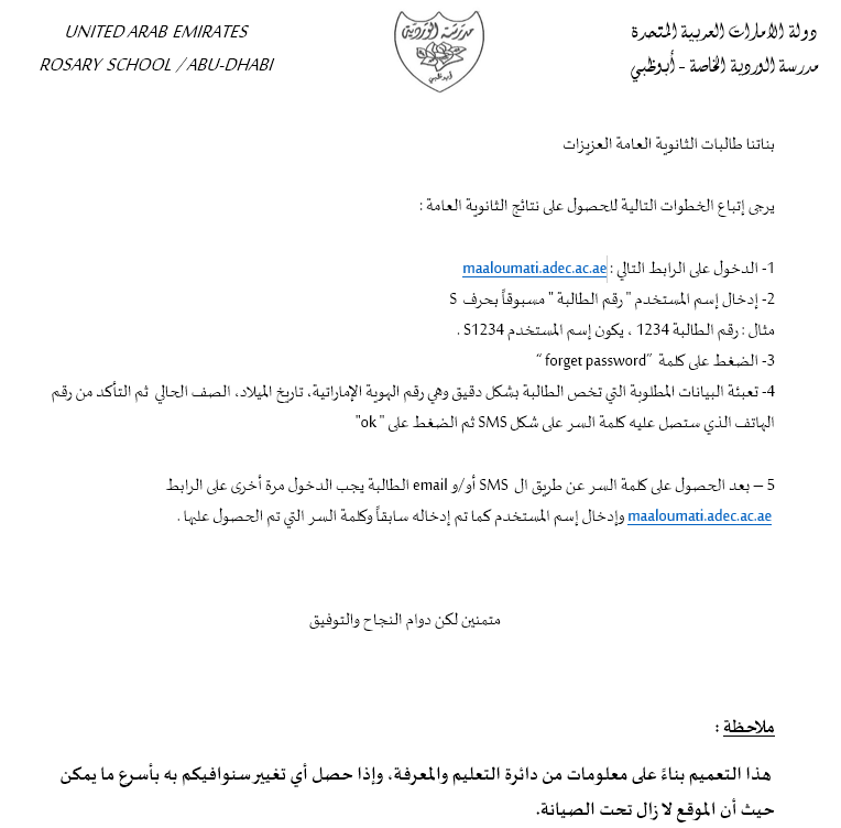 ثم اتبع الارشادات الاتية المقدمة من مدرسة الوردية الخاصة في أبو ظبي: