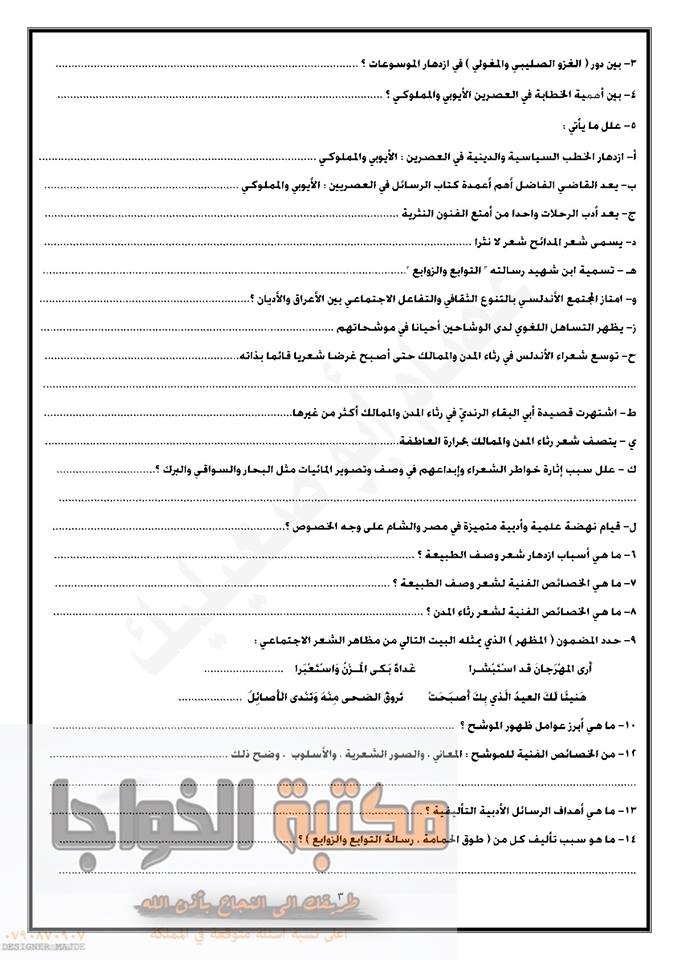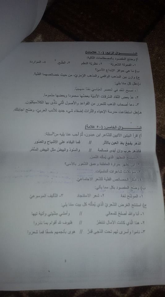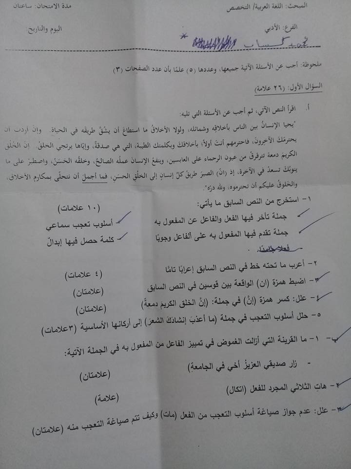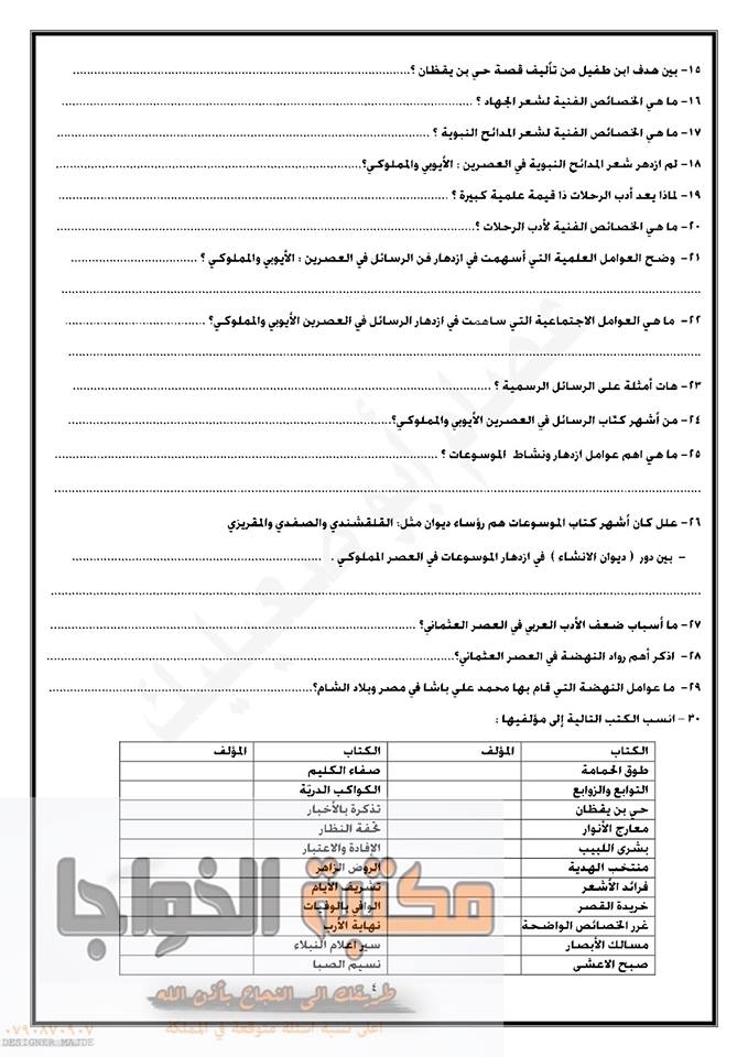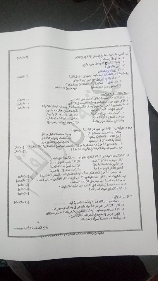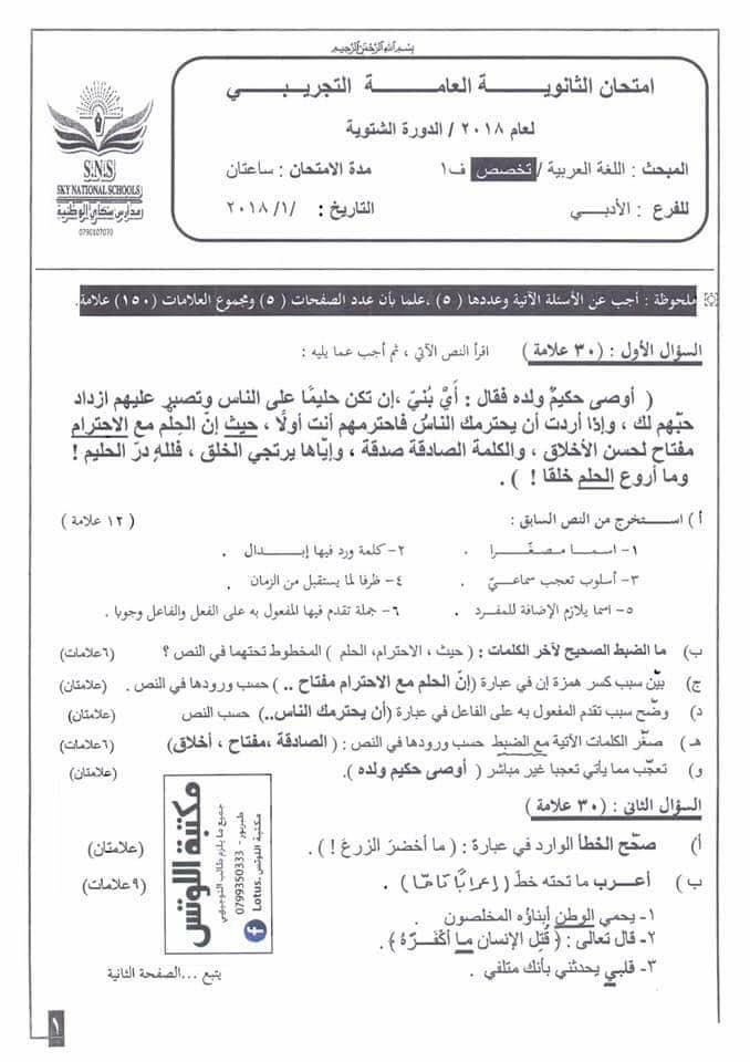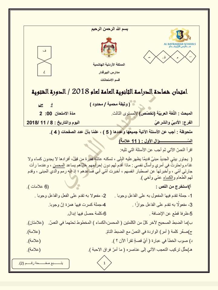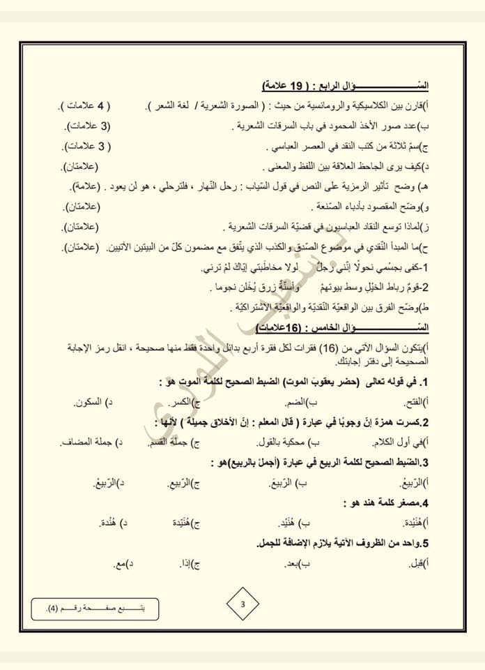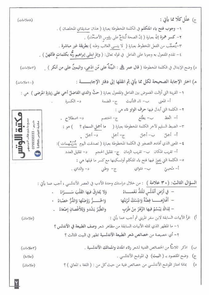 التوجيهي :مجموعة كبيرة من النماذج المقترحة لمادة تخصص اللغة العربية م3 للفرع الأدبي المنهاج الجديد ل