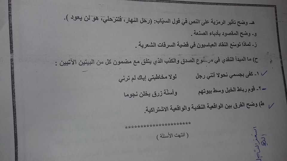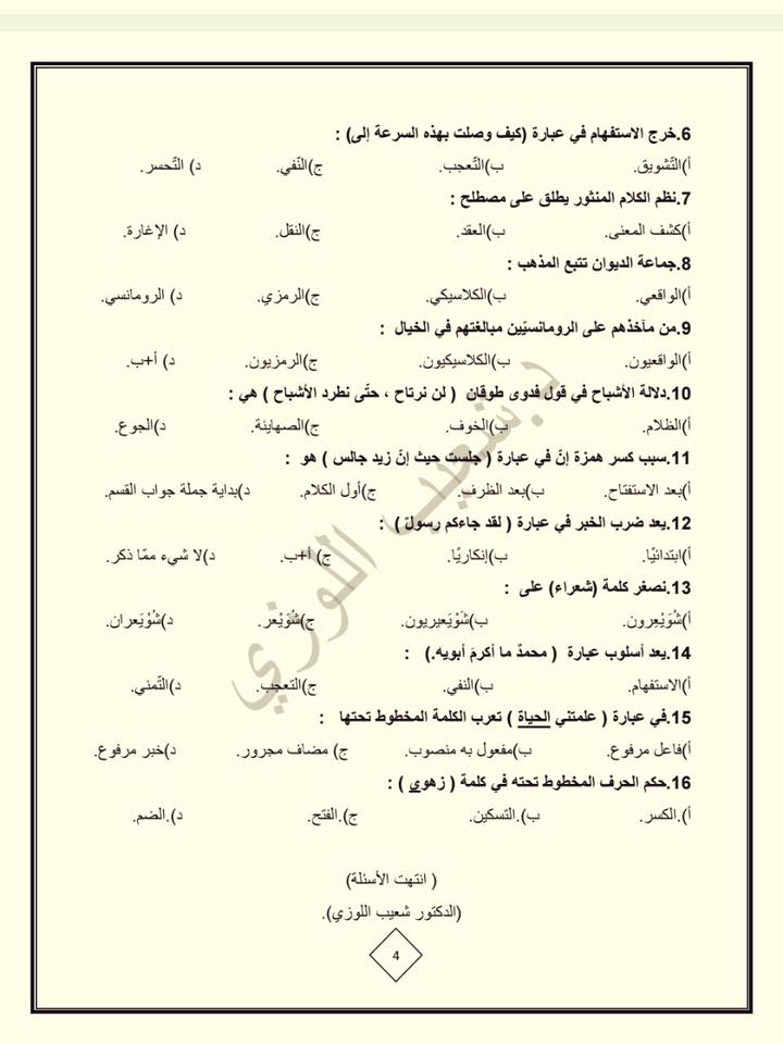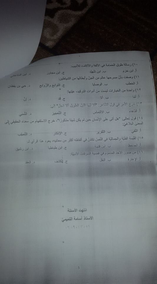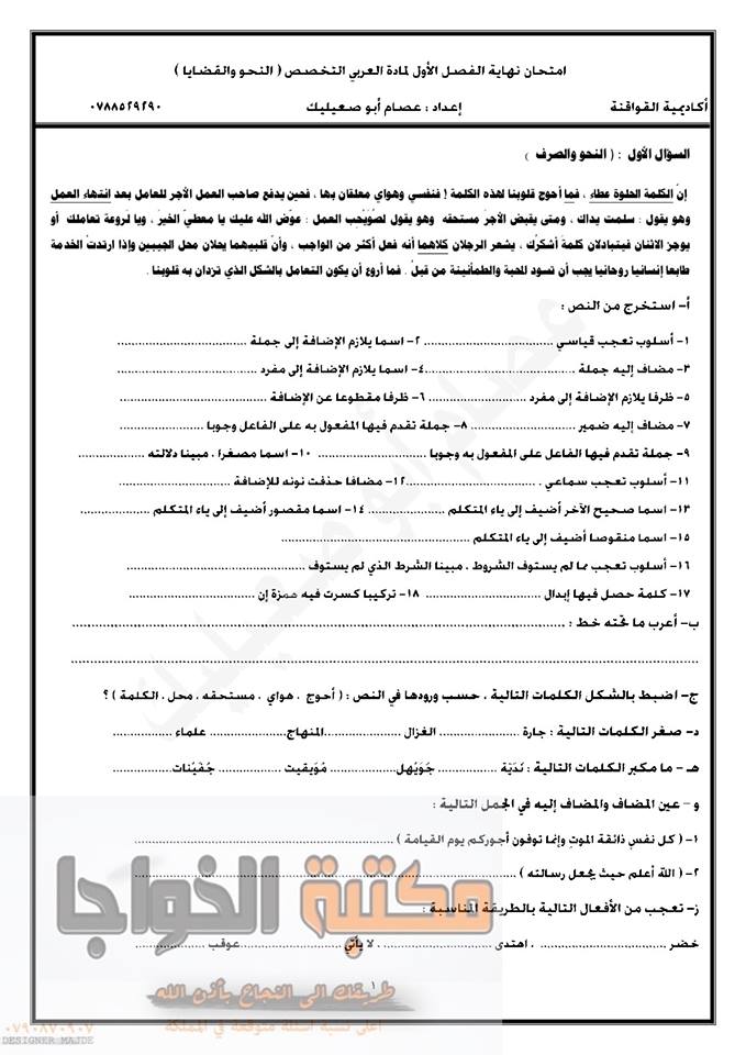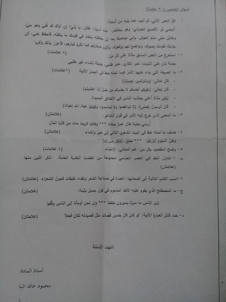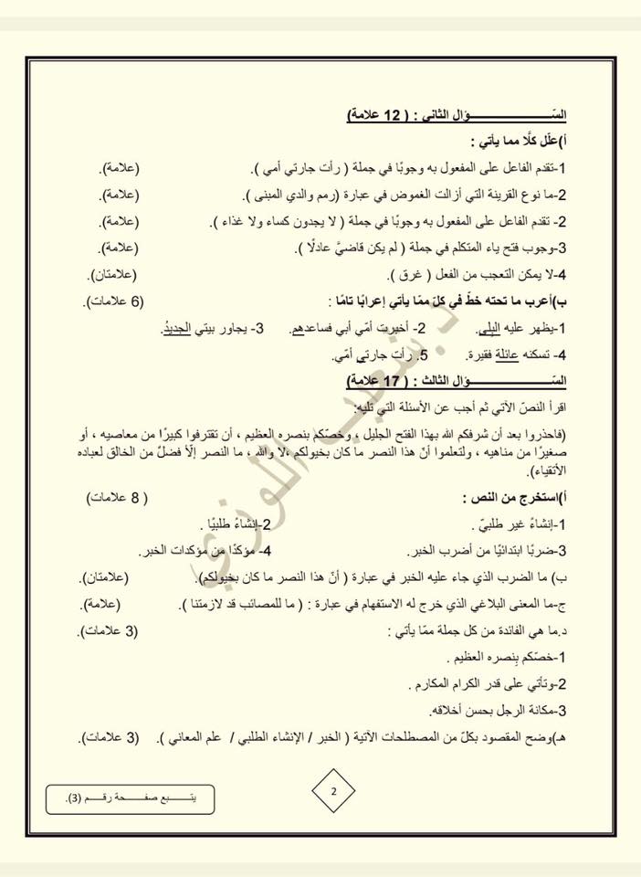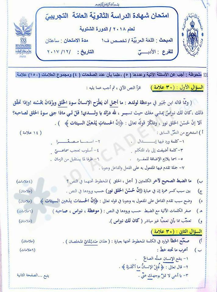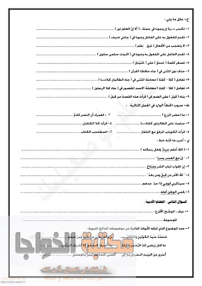 التوجيهي :مجموعة كبيرة من النماذج المقترحة لمادة تخصص اللغة العربية م3 للفرع الأدبي المنهاج الجديد ل
