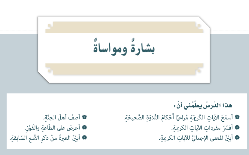 حل درس بشارة ومواساة لمادة التربية الاسلامية للصف السابع الفصل الثاني