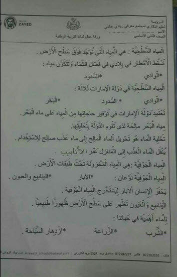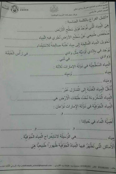 بالصور ورقة عمل المياه في بلادي ترلمادة التربية الوطنية للصف الثاني الفصل الثاني