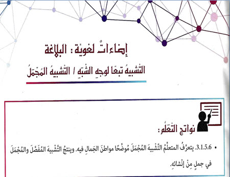 حلول درس التشبية المجمل لمادة اللغة العربية الصف الثامن الفصل الثاني
