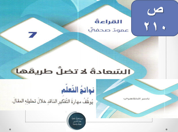 حلول درس السّعادة لا تضلّ طريقها لمادة اللغة العربية الصف التاسع الفصل الثاني