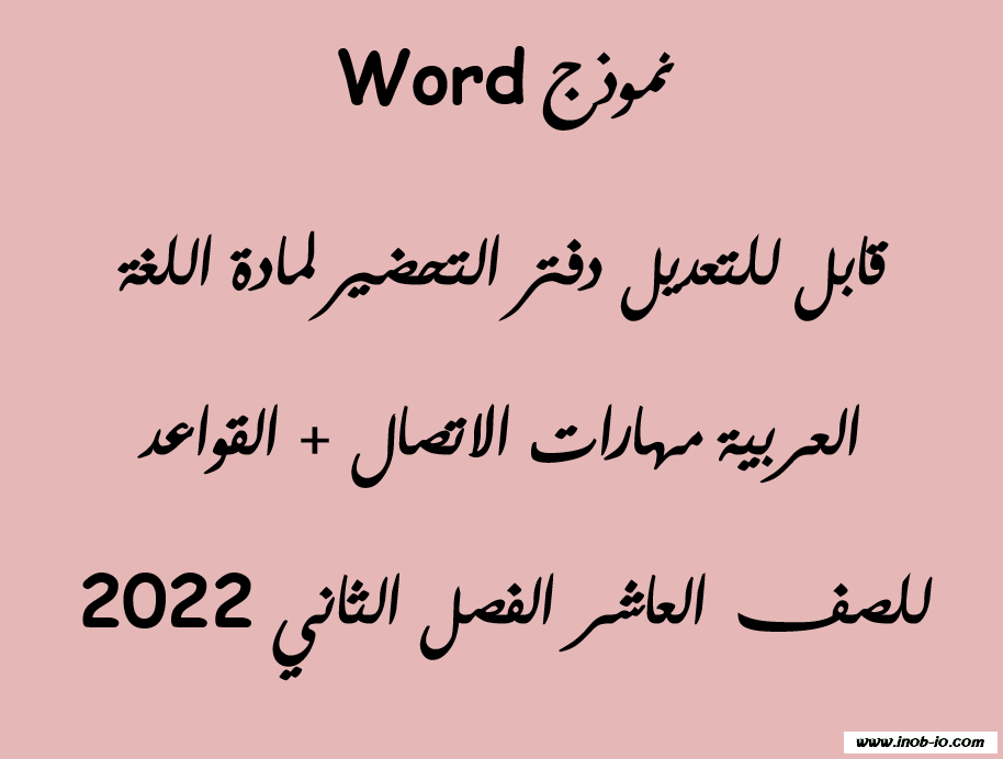 نموذج Word قابل للتعديل دفتر التحضير لمادة اللغة العربية مهارات الاتصال + القواعد للصف العاشر الفصل الثاني 2022