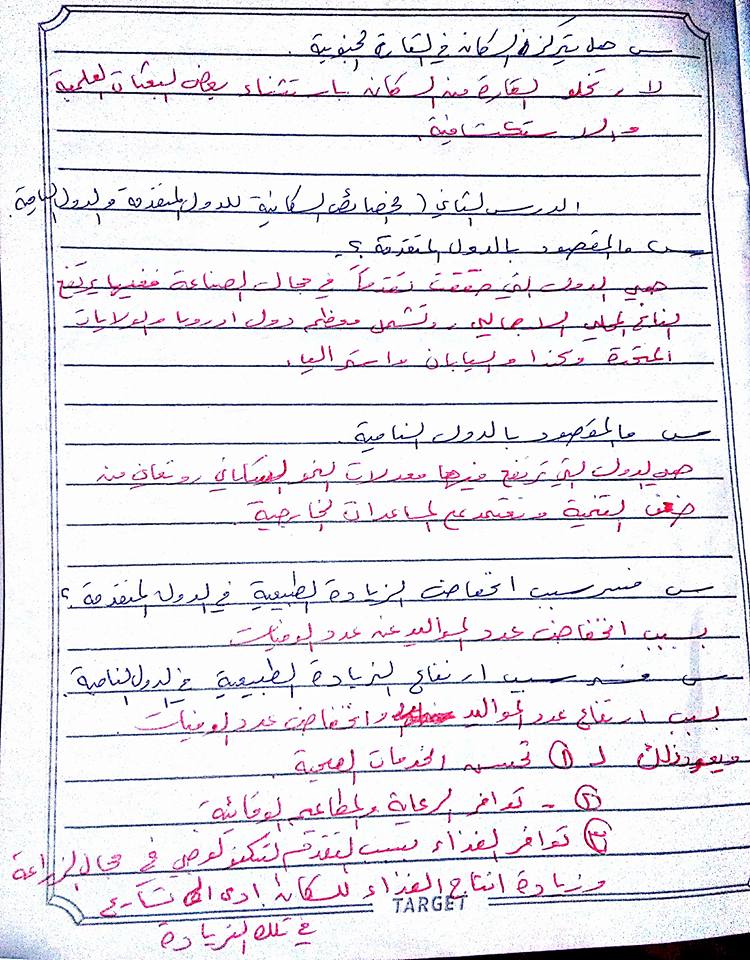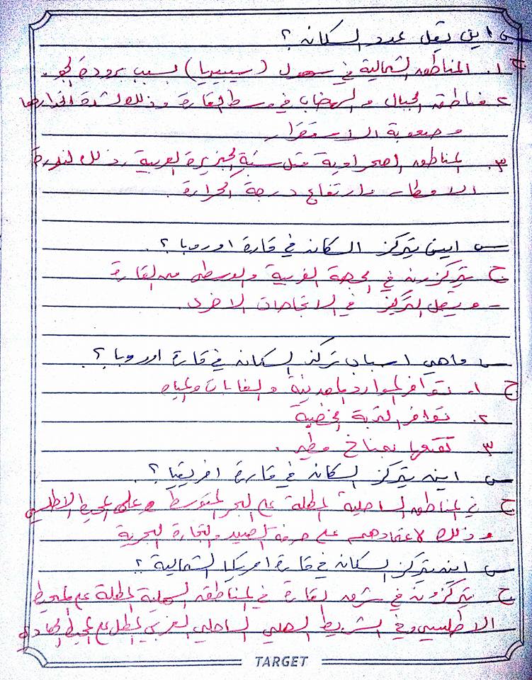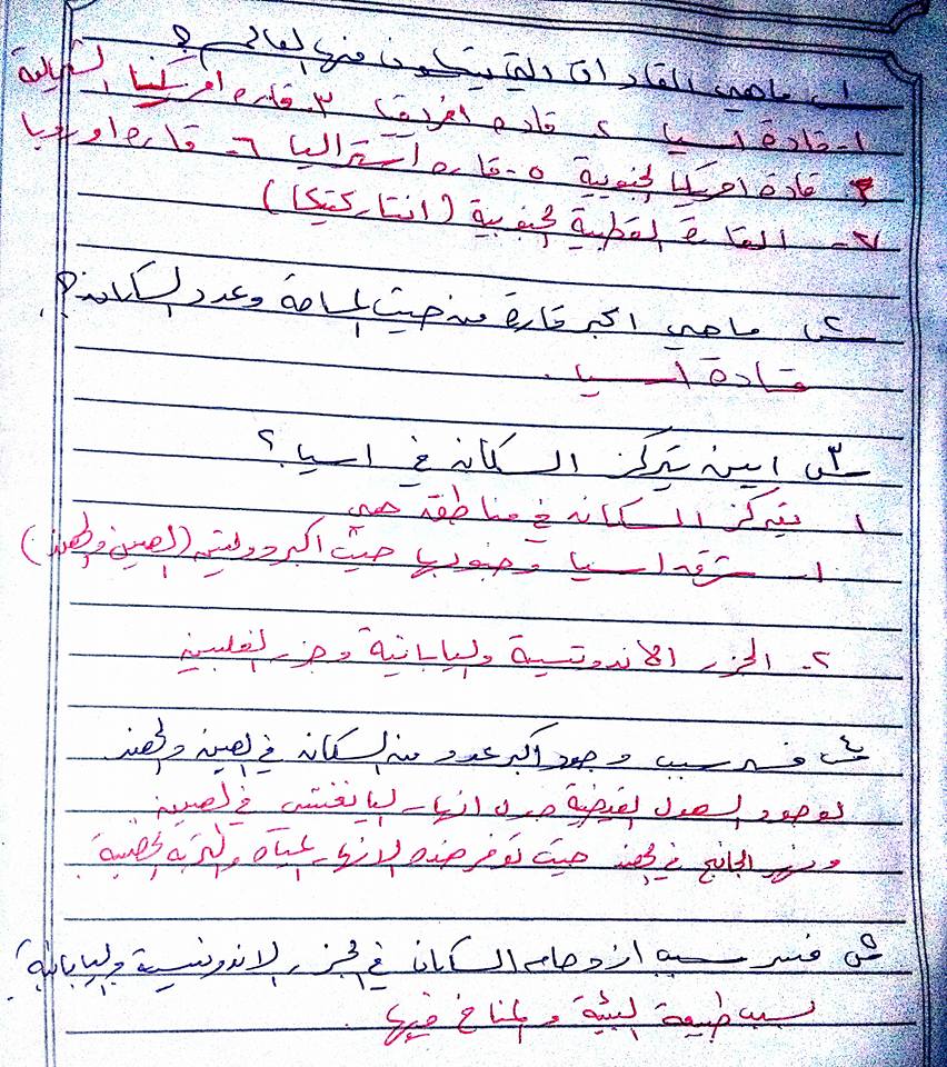 بالصور تلخيص الدرس "الأول والثاني والثالث" من الوحدة الأولى لمادة الجغرافيا بصيغة سؤال وجواب للصف السابع