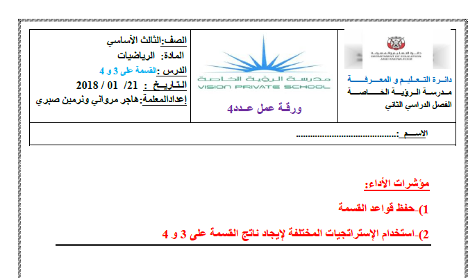 مجموعة اوراق عمل لمادة الرياضيات الصف الثالث الفصل الثاني