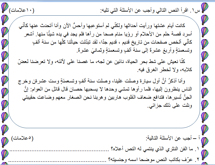 نموذج Word اختبار الشهر الأول لمادة اللغة العربية للصف العاشر الفصل الثاني