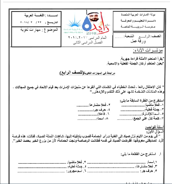 مراجعة شاملة في مهارات مادة اللغة العربية الصف الرابع الفصل الثاني لتحميل الملف PDF اضغط هنا وتابع