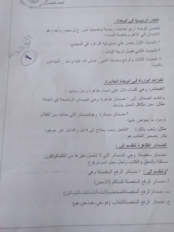 ملخص الوحدات "10-11"لمادة اللغة العربية للصف الخامس الفصل الثاني