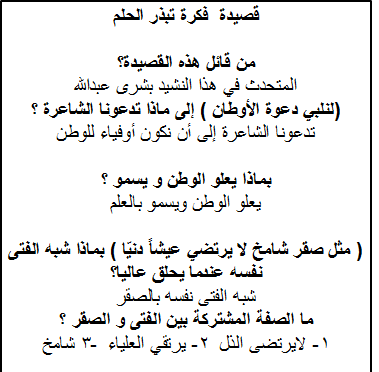 بوربوينت شرح قصيدة فكرة تبذر الحلم لمادة اللغة العربية للصف الرابع الفصل الثاني