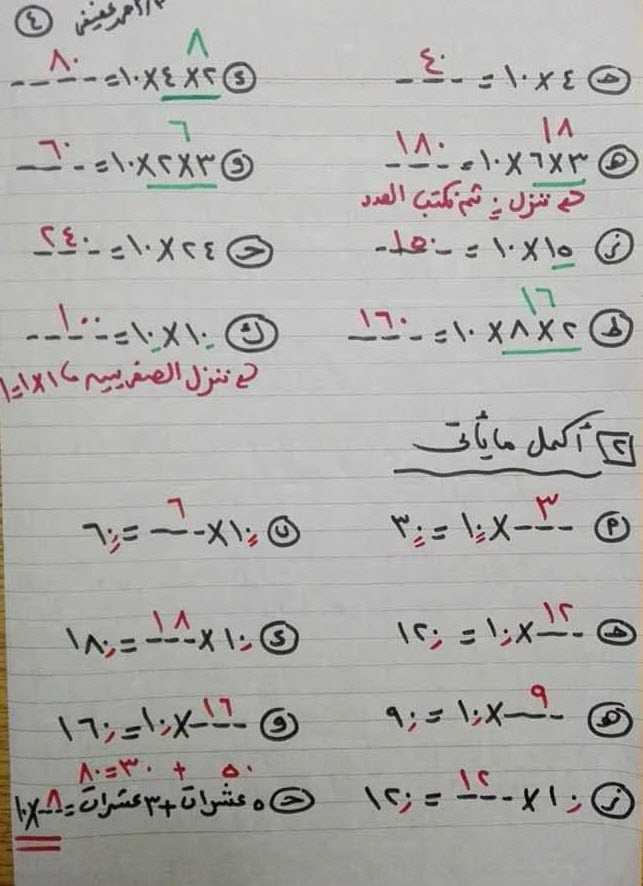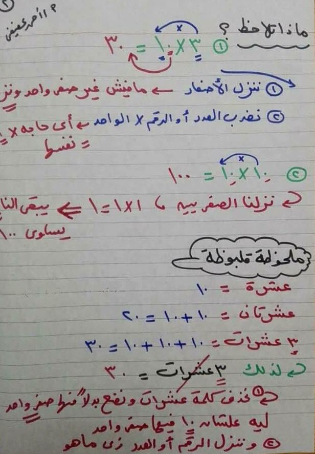 شرح رائع عن الأخطاء التي يتعرض لها طلاب الصف الثالث في مادة الرياضيات في ضرب الأعداد 10 و 100 أنقر للتوسيع...