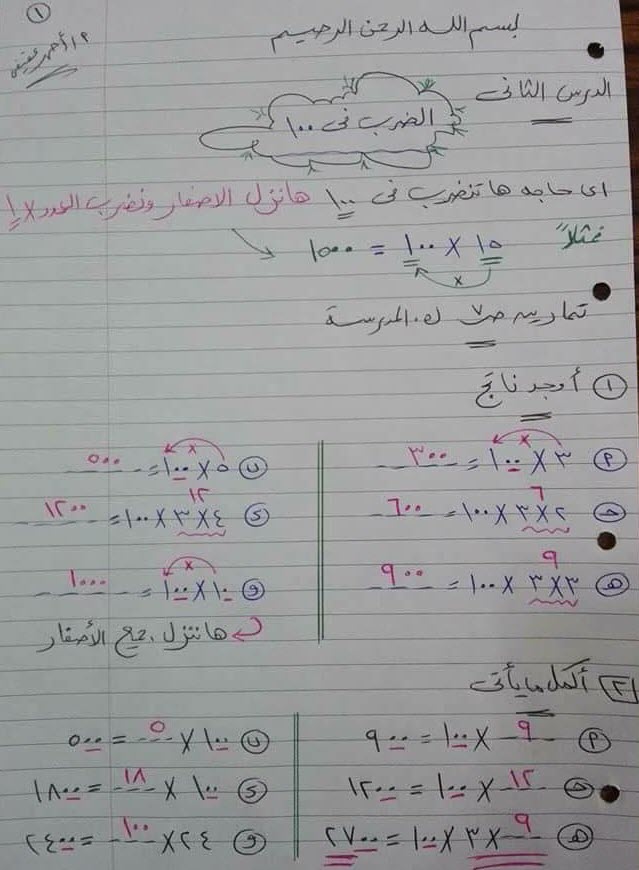 شرح رائع عن الأخطاء التي يتعرض لها طلاب الصف الثالث في مادة الرياضيات في ضرب الأعداد 10 و 100